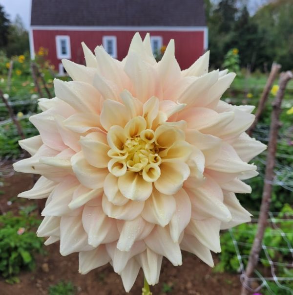 This plant produces massive 8-10″ blooms that are blush in colour with a creamy yellow center. It is what dreams are made of.